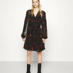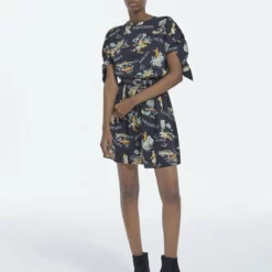 The Kooples Donna ROBE COURTE AVEC MANCHES VOLANTES ET COL VEN – Vestito Elegante – Pink